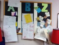 Photo 2: organization board: anything we don't want to lose (i.e. go in the backpack) we hang here
