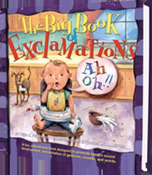 The Big Book of Exclamations by Teri Kaminski-Peterson, pediatric speech pathologist, is an educational children's book designed to promote speech sound development, and imitation of gestures, sounds, and words. Unlike most books, it doesn't have a story to read. Instead, along the bottom of each page, there are prompts which teach parents/caregivers how to act out the illustrations and interact with children using gestures, sounds, and words. This twenty-four page book is also filled with information intended to help parents understand speech and language development, and also provides resources for those seeking advice. Review posted on their website: "I work with a group of toddlers ranging in age from 18 to 30 months. I use this book almost every day for our "circle" time. I have found the book to be very helpful with every day words for these children. They ask for the "no no puppy book" all the time, and they cry when I tell them we can't read it right away! The children love the make all the animal noises and they also love to perform all the actions. I strongly suggest this book to anyone who has children that are learning gestures, sounds, and words." Kristin - Playhouse Childcare Center.